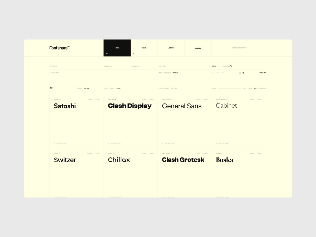 A collection of free fonts, suitable pairings and a cool simple UI.