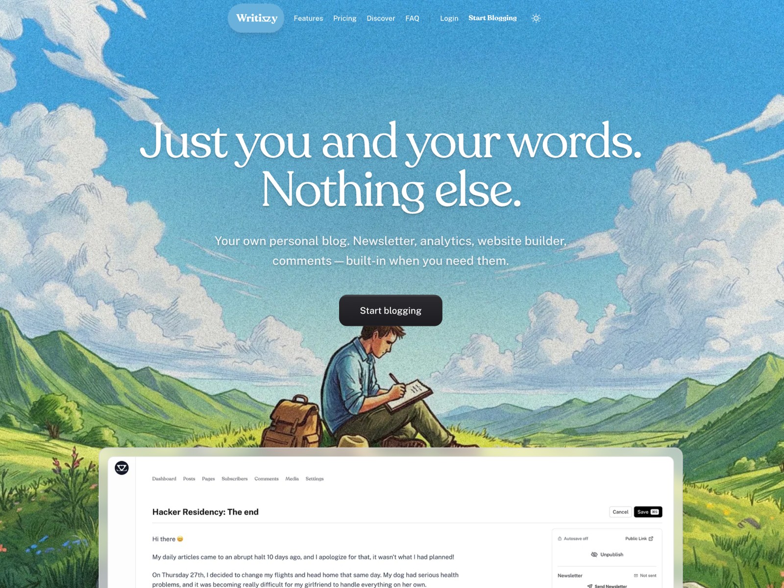 A minimalist blogging platform. No distractions, no complexity, just a beautiful space for your ideas to shine.