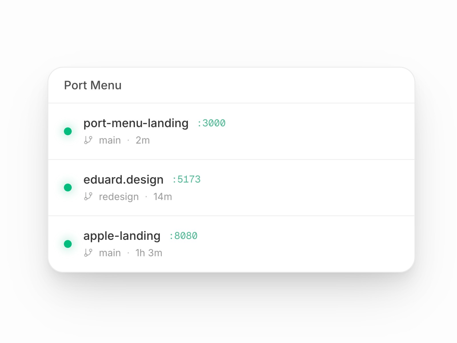Mac menubar app that shows which ports you currently have running.